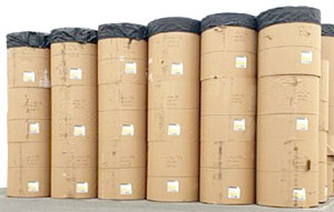 material paper rolls are generally stacked on end 2 or 3 rolls tall