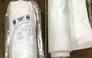 Color: White - Stock Rolls with cut edge hems, folded on width to 5', rolled on length; intended for pulling off amount needed and cutting to size. Available for quick shipment.